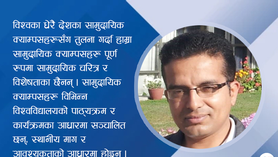 हाम्रो सन्दर्भमा सामुदायिक क्याम्पसहरूलाई वास्तविक रूपमा समुदायको स्रोत केन्द्रको रुपमा विकास गर्दै अहिलेको युगका प्रतिस्पर्धी जनशक्ति उत्पादनका निकाय बनाउनु आवश्यक छ । स्थानीय निकायको संलग्नतामा दिगो आर्थिक सबलीकरण, युगसापेक्ष शैक्षिक कार्यक्रम, प्राज्ञिक वातावरण र संस्कृतिको विकास, प्रभावकारी व्यवस्थापन विना त्यो सम्भव देखिंदैन ।