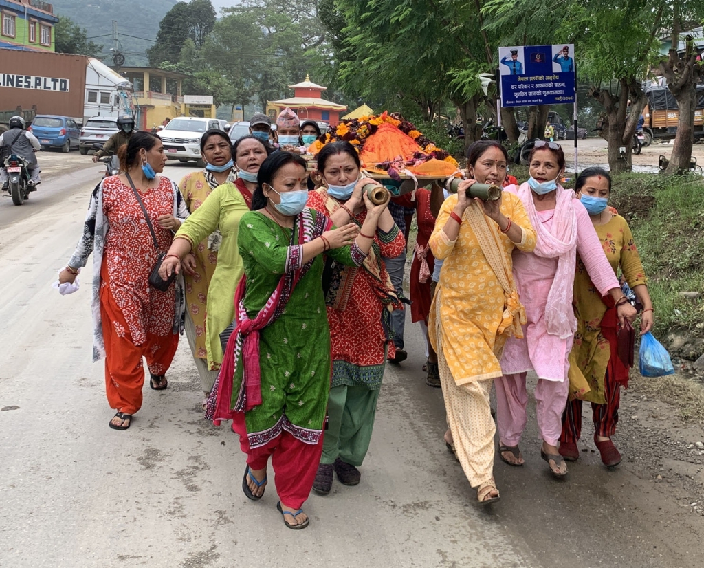 कुरुतीलाई तोड्दै तनहुँका महिलाः शव बोकेर घाटसम्म पुर्‍याए