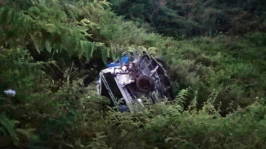 हायस मानुङ पुग्नै लाग्दा ब्रेकरका कारण उक्लन नसकेपछि ब्याक भएर करिब तीन सय मिटर तल खसेको थियो ।
