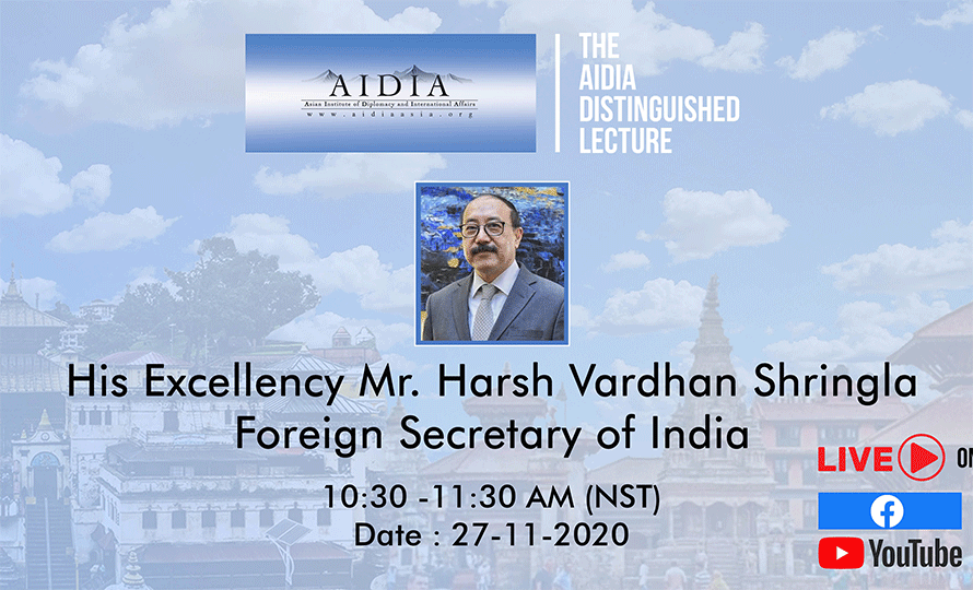 एसियन इन्ष्टिच्युट अफ डिप्लोमेसी एण्ड इन्टरनेसनल अफेयर्स (एआईडीआईए) ले आयोजना गर्ने कार्यक्रममा भारतीय विदेश सचिवले दुईपक्षीय सम्बन्ध र साझेदारीको विषयमा बोल्ने छन् ।