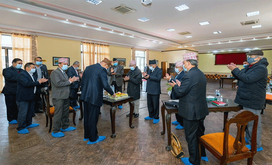 नेकपा सचिवालय बैठकमा पौडेलको जन्मदिन सेलिब्रेसन